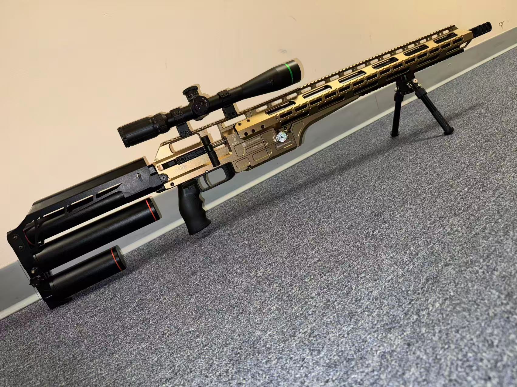 We are so proude to release our new long range MCAR(Mutil Caliber Air Rifle) Scope and Bipiod are not included